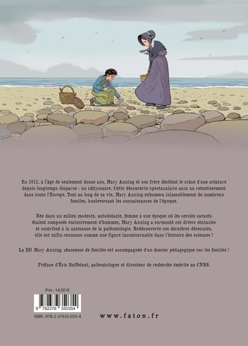 En 1811, à l'âge de seulement douze ans, Mary Anning et son frère décèlent le crâne d'une créature depuis longtemps disparue : un ichtyosaure. Cette découverte spectaculaire aura un retentissement dans toute l'Europe. Tout au long de sa vie, Mary Anning exhumera inlassablement de nombreux fossiles, bouleversant les connaissances de l'époque. Née dans un milieu modeste, autodidacte, femme à une époque où les cercles savants étaient composés exclusivement d'hommes, Mary Anning a surmonté ces divers obstacles et contribué à la naissance de la paléontologie. Redécouverte ces dernières décennies, elle est enfin reconnue comme une figure incontournable dans l'histoire des sciences !