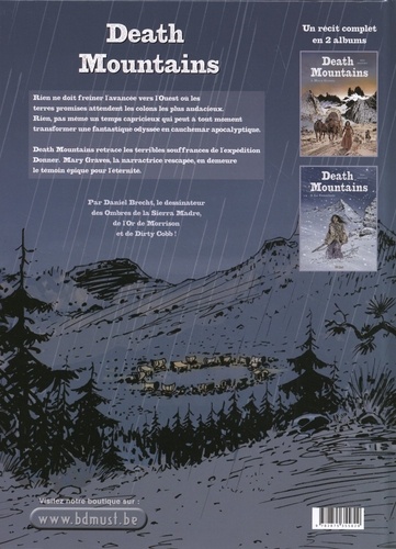 Rien ne doit freiner l'avancée vers l'Ouest où les terres promises attendent les colons les plus audacieux Rien, pas même un temps capricieux qui peut a tout moment transformer une fantastique odyssée en cauchemar apocalyptique. Death Mountains retrace les terribles souffrances de l'expédition Donner. Mary Graves, la narractrice rescapée, en demeure le témoin épique pour l'éternité.