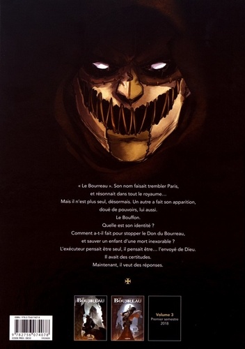 L'exécuteur de Paris a trouvé à qui parler : le Bouffon, une insupportable menace pour l'ordre établi. Mais, pour utiliser le Don et en finir avec cet adversaire surgi de nulle part, le Bourreau doit découvrir son identité... Le Bourreau n'est plus le seul capable de miracles à Paris. Un mystérieux saltimbanque a fait son apparition, redonnant espoir aux Parisiens. Le Parlement a ordonné son arrestation, mais l'exécuteur est obsédé par cet enfant que le Bouffon a sauvé, et par l'étrange cave qu'il a découverte... Curieusement, les nobles sont déterminés à l'empêcher de fouiller dans cette direction. Le Bouffon, l'enfant miraculé, les nobles... Tout est lié, il le sent, mais par quoi ?