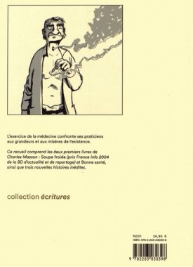 Biographie: Charles Masson est un médecin ORL français qui partage son temps entre la médecine et la bande dessinée. En 2003, il publie son premier roman graphique, Soupe froide, une œuvre dans laquelle il raconte la mort d’un SDF atteint du cancer, une histoire inspirée par son expérience dans un service de cancérologie. Cet album lui a valu le Prix France Info et a marqué ses débuts dans le monde de la bande dessinée.
