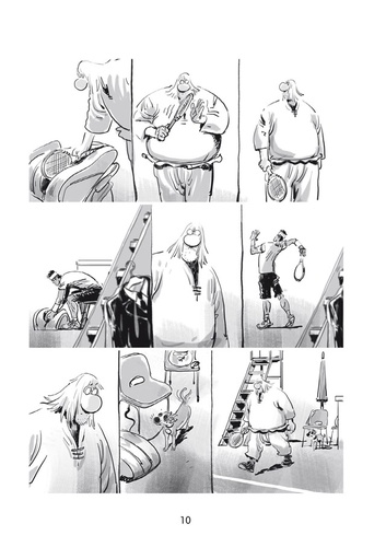 Ca commence avec le tirage au sort, ça se poursuit sur un service, ça finit avec un gagnant et un perdant. Ca s'étend sur des centaines de pages de doute, de tension, de joie, de peur, d'impuissance et de colère. Ca impressionne, ça angoisse, ça fait rire et ça étonne. C'est du sport à l'état brut, c'est un ovni en BD. C'est un match de tennis dans son intégralité (point par point ! ) raconté par Grégory Panaccione !