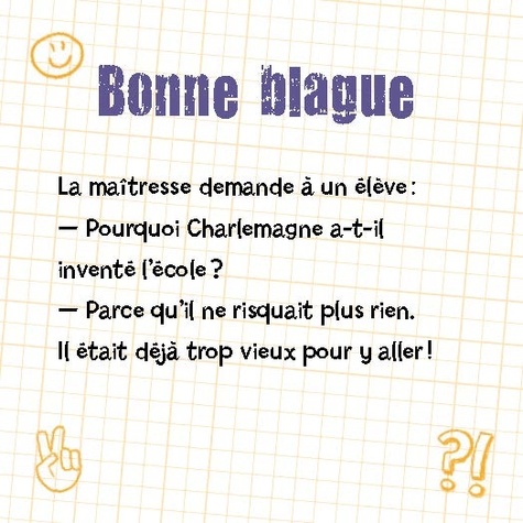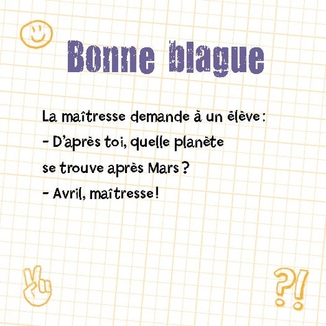 Avec plus de 360 blagues, amuse tous tes copains pendant la récré ! Enigmes, devinettes, charades, "Monsieur et Madame"... Tu vas devenir le champion de la blague !