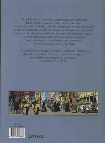 Fin juillet 1941 à Auschwitz, le franciscain Maximilien Kolbe fait le sacrifice suprême. Il offre sa vie en échange de celle d'un père de famille. Cette fin héroïque ne doit pas faire oublier ce que fut le reste de la vie de cet homme hors du commun : journaliste, créateur d'une gigantesque aventure de presse, missionnaire au Japon... la vie de Maximilien Kolbe fut d'une richesse stupéfiante pour un homme qui ne souhaitait que la pauvreté. Une vie au service de la Vierge Marie. "Je voudrais m'user jusqu'à la corde au service de l'Immaculée, disparaître sans laisser de trace, et que le vent emporte mes cendres aux quatre coins du monde", Maximilien-Marie Kolbe.