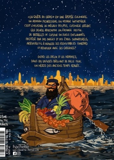 "La quête du gras" est une épopée culinaire, un roman picaresque, un voyage initiatique, c'est l'histoire de mégalo poupos, cuisinier errant, qui devra affronter un étrange destin... de batailles de cuisine en duels enflammés, protégé par des mages et des êtres surnaturels, arrivera-t-il à vaincre ses redoutables ennemis et renouer avec ses origines ? Entre les dieux et les hommes, dans un univers brillant de mille feux, un héros des anciens temps renaît...