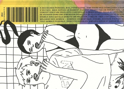 Nici est scientifique et aime se saouler dans le bar d'à côté. Secrètement, elle construit Melek, un corps qui lui permet de voyager dans des dimensions parallèles. Dans l'une de ces dimensions, elle rencontre Nici - c'est-à-dire elle-même - dans le corps de Melek et entame une relation avec elle. Lina Ehrentraut mêle romance, science-fiction et drame, elle nous embarque dans un monde parallèle où tout semble possible : double identité, relations queer et amour de soi. Mais pour combien de temps ?