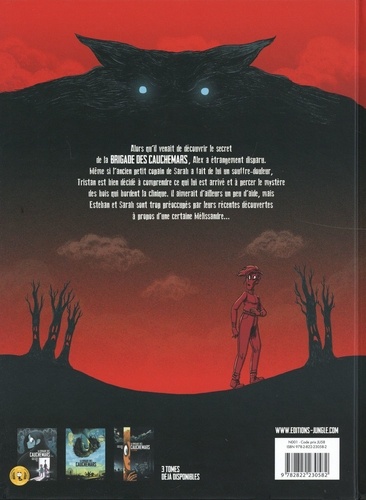 Une BD de Franck Thilliez, le maître du thriller français ! Un nouveau tome de la Brigade des cauchemars au coeur d'une forêt mystérieuse et effrayante ! Alors qu'il venait de découvrir le secret de la Brigade des Cauchemars, Alex a étrangement disparu. Même si l'ancien petit copain de Sarah a fait de lui un souffre-douleur, Tristan est bien décidé à comprendre ce qui lui est arrivé et à percer le mystère des bois qui bordent la clinique. Il aimerait d'ailleurs un peu d'aide, mais Esteban et Sarah sont trop préoccupés par leurs récentes découvertes à propos d'une certaine Mélissandre...