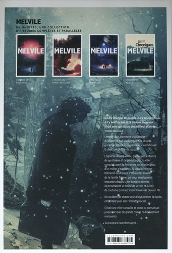 Lorsque vous traversiez les plateaux d'Haslam et que vous empruntiez la faute sur longe la rivière, un panneau vous indiquait la direction de Melvile. Engoncée dans la vallée, gardée par les forets de sycomores et de pins douglas, la ville comptait avant la fermeture des scieries plus d'un milliers d'habitants. Si vous n'étiez pas bûcheron ou draveur, c'étaient les scieries de la famille Tréjean qui vous employaient. Implantés depuis la fin du siècle dernier, ils possédaient la moitié de la ville et il était de coutume qu'ils en soient maires de père en fils. Un accident de chasse arrêta brutalement la lignée, emportant avec elle l'industrie locale. C'était une ville tranquille et on ne lui connaissait jusqu'alors pas de grands crimes ni d'événement marquants. A quelques exceptions près...