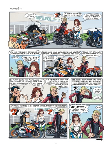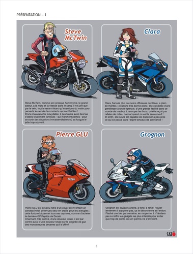 1er album de Steve Mac Twin : avis aux fanas de twin, aux essoreurs de poignées, aux fondus de vitesse ? bref, aux motards ? , Satô est de retour et prêt pour la castagne ! Dans ce premier épisode de ses aventures, on découvre Steve Mac Twin, un motard qui n'a peur de rien, et surtout pas des radars et autres trucs inventés par les pandores pour nous pourrir la vie ! Démonstration en 46 gags hilarants réservés à tous les motards amateurs de BD. 1er volet des aventures de Steve Mac Twin ; des gags, du fun et des gros cubes : une nouvelle série de gags 100 % motards.