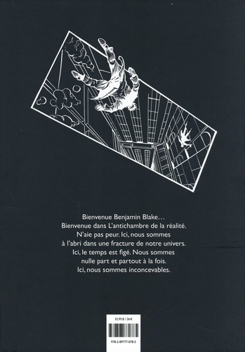 Bienvenue Benjamin Blake... Bienvenue dans L'antichambre de la réalité. N'aie pas peur. Ici, nous sommes à l'abri dans une fracture de notre univers. Ici, le temps est figé. Nous sommes nulle part et partout à la fois. Ici, nous sommes inconcevables.