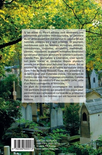 Si les allées du Père-Lachaise sont désormais une promenade parisienne incontournable, le cimetière du xxe arrondissement doit surtout sa popularité aux hommes célèbres qui y sont enterrés. Et pourtant, nombreuses sont les femmes, écrivaines, peintres, comédiennes, cinéastes, acrobates, mathématiciennes, résistantes ou encore militantes féministes qui ont pour dernière demeure le cimetière parisien. Camille Paix, journaliste à "Libération", s'est lancée sur leurs traces et compulse depuis plusieurs années les archives pour exhumer leur passé. Qui se souvient de la peintre et écrivaine surréaliste Unica Zürn ? Ou de Nelly Roussel, l'une des premières à se battre pour une maternité choisie ? En sortant de l'ombre ces vies trop longtemps ensevelies, Camille Paix dessine les contours d'une nouvelle carte, celle d'un Paris cosmopolite et féministe. Un plan du cimetière accompagne les quelque 100 portraits illustrés qui peuplent ces pages pour permettre aux curieuses et curieux de se promener dans les pas de ces femmes qui ont façonné notre histoire.