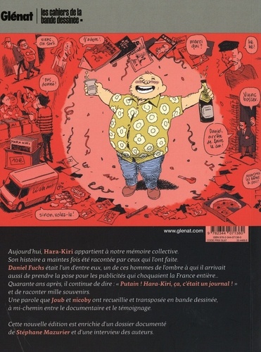 Aujourd'hui, Hara-Kiri appartient à notre mémoire collective. Son histoire a maintes fois été racontée par ceux qui l'ont faite. Daniel Fuchs était l'un d'entre eux, un de ces hommes de l'ombre à qui il arrivait aussi de prendre la pose pour les publicités qui choquaient la France entière... Quarante ans après, il continue de dire : "Putain ! Hara-Kiri, ça, c'était un journal ! " et de raconter mille souvenirs. Une parole que Joab et nicoby ont recueillie et transposée en bande dessinée, à mi-chemin entre le documentaire et le témoignage. Cette nouvelle édition est enrichie d'un dossier documenté de Stéphane Mazurier et d'une interview des auteurs.