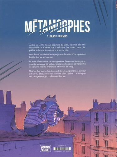 Ambre est la fille le plus populaire du lycée, organise des fêtes inoubliables et n'hésite pas à ridiculiser les autres. Lucas, lui, préfère la lecture, la musique et le jeu de rôle. Mais lorsqu'un camion les asperge tous les deux d'un mystérieux liquide, leur vie va basculer. La jeune fille soucieuse de son apparence devient une louve-garou, musclée, puissante jet poilue), tandis que le garçon se transforme en vampire, rapide, hypnotique (et buveur de sang). Unis par leur secret, les deux vont devoir comprendre ce qui leur est arrivé, découvrir ce qui se trame dans l'ombre... et accepter ces changements qui bouleversent leur vie.