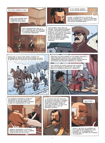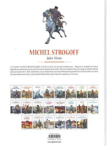Redécouvrez le roman d'aventures historique de Jules Verne en bande dessinée ! La mission confiée à Michel Strogoff, courrier du tsar, est des plus périlleuses : déjouer le complot du traître Ogareff, qui menace la vie du frère du tsar et l'empire tout entier. Dans une Sibérie à feu et à sang, le vaillant officier parcourra plus de 5 500 kilomètres, sous l'identité du marchand Nicolas Korpanoff. Son seul réconfort lui vient de la pensée de sa mère, et de la belle Nadia Fédor, que le hasard a placée sur sa route.