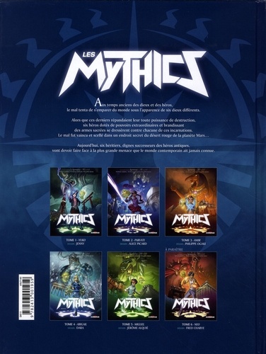 Les Mythics vous emmènent cette fois au Mexique à la rencontre de Miguel, l'enfant des bidonvilles devenu héros. LA nouvelle série imaginée par les auteurs des Légendaires et de La Rose écarlate . Il y a longtemps, alors que le Mal répandait sa toute puissance de destruction, six héros dotés de pouvoirs extraordinaires se dressèrent contre lui. Il fut vaincu et scellé dans un endroit secret du désert rouge de la planète Mars... Aujourd'hui, les six héritiers et dignes successeurs de ces héros antiques vont devoir faire face à la plus grande menace que le monde contemporain ait jamais connue.