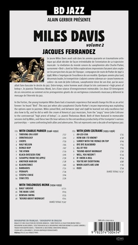 Le jeune Miles Davis avait subi dans les années quarante un traumatisme artistique qui allait décider de façon irrémédiable de l'orientation de sa trajectoire musicale : la révélation du monde sonore du saxophoniste alto Charlie Parker, surnommé "Bird", dont les folles explorations improvisées faisaient alors exploser les perspectives du jazz de l'époque ; compagnon de route de Parker de 1947 à 1948, Miles s'imprègne de l'excellence de son modèle. Quelques années plus tard, désormais leader, le trompettiste s'adjoint comme sideman un "jeune homme en colère" du nom de John Coltrane, saxophoniste ténor de son état, qui lui aussi allait faire basculer le destin du jazz. Entre-temps, notre homme avait côtoyé le très controversé "high priest of bebop", le pianiste Thelonious Monk, lors d'une séance d'enregistrement mémorable. Ces deux CD témoignent de ces rencontres au sommet où les protagonistes géants de ces vertigineux croisements musicaux y délivrent le message de l'éternité du jazz.