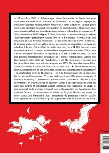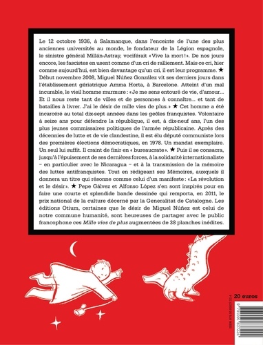 Le 12 octobre 1936, à Salamanque, dans l'enceinte de l'une des plus anciennes universités au monde, le fondateur de la Légion espagnole, le sinistre général Millán-Astray, vociférait "Vive la mort ! ". De nos jours encore, les fascistes en usent comme d'un cri de ralliement. Mais ce cri, hier comme aujourd'hui, est bien davantage qu'un cri, il est leur programme. Début novembre 2008, Miguel Núnez González vit ses derniers jours dans l'établissement gériatrique Amma Horta, à Barcelone. Atteint d'un mal incurable, le vieil homme murmure : "Je me sens entouré de vie, d'amour... Et il nous reste tant de villes et de personnes à connaître... et tant de batailles à livrer. J'ai le désir de mille vies de plus." Cet homme a été incarcéré au total dix-sept années dans les geôles franquistes. Volontaire à seize ans pour défendre la république, il est, à dix-neuf ans, l'un des plus jeunes commissaires politiques de l'armée républicaine. Après des décennies de lutte et de vie clandestine, il est élu député communiste lors des premières élections démocratiques, en 1978. Un mandat exemplaire. Un seul lui suffit. Il craint de finira bureaucrate ". Puis il se consacra, jusqu'à] l'épuisement de ses dernières forces, à la solidarité internationaliste — en particulier avec le Nicaragua — et à la transmission de la mémoire des luttes antifranquistes. Tout en rédigeant ses Mémoires, auxquels il donnera un titre qui résonne comme celui d'un manifeste : "La révolution et le désir,".