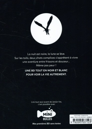 Une BD tout en noir et blanc pour voir la vie autrement ! La nuit est noire, la lune se lève. Sur les toits, deux chats complices s'apprêtent à vivre une aventure entre frissons et douceur... Même pas peur !