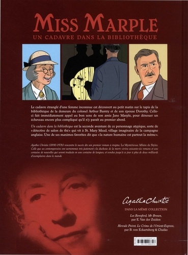 Le cadavre étranglé d'une femme inconnue est découvert au petit matin sur le tapis de la bibliothèque de la demeure du colonel Arthur Bantry et de son épouse Dorothy. Celle-ci fait immédiatement appel au bon sens de son amie Jane Marple, pour dénouer un écheveau encore plus compliqué qu'il n'y paraît au premier abord. Un cadavre dans la bibliothèque est la seconde aventure de ce personnage atypique, sorte de "détective de salon de thé" qui vit à St. Mary Mead, village imaginaire de la campagne anglaise. Une de ses maximes favorites dit que "la nature humaine est partout la même".