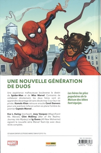 Une nouvelle génération de duos. Une expérience malheureuse bouleverse le destin de Spider-Man et de Miss Marvel. Contraints de collaborer étroitement, les deux héros vont en apprendre davantage (et sans doute trop ! ) sur leur vie privée. Kamala Khan retrouve ensuite Carol Danvers pour une aventure riche en action où plane l'ombre du premier Captain Marvel...