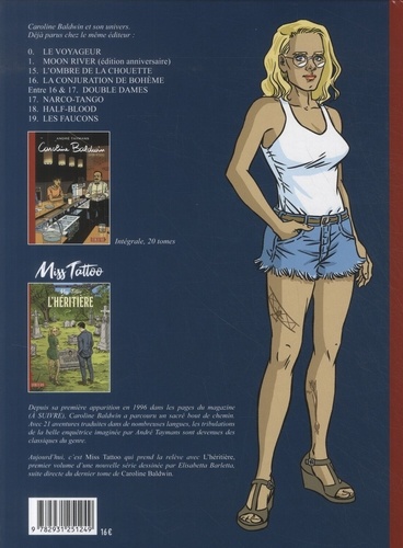 En 2019, le tome 19 de Caroline Baldwin, Les faucons, mettait un point final à ce classique de la BD. Un point final ? Pas si sûr ! ... Dans les dernières pages de l'album, on apprenait en effet que Caroline avait une demi-sÅ? ur connue sous le surnom de Miss Tattoo ! Cinq ans plus tard, André Taymans relance les personnages de sa série phare dans un nouveau cycle, dessiné par la talentueuse dessinatrice italienne Elisabetta Barletta à qui l'on doit le premier tome de Singleton d'après Henri Vernes. Propulsée au devant de la scène, Miss Tattoo aura fort à faire pour gérer l'encombrant héritage que lui a laissé Caroline. Elle pourra heureusement compter sur les fidèles de la première heure de la brune enquêtrice...
