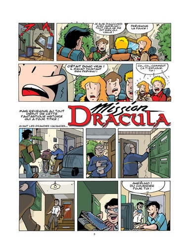 Dans le cadre de l'entrée de la Roumanie dans l'Union Européenne, une association vient de choisir Angélino comme l'heureux bénéficiaire d'un séjour pour quatre personnes dans ce magnifique pays. Pour Angélino, c'est l'occasion de rencontrer, après de longues années de correspondance, son ami Alin qui habite Sibiu, et, pour Marine de réaliser son rêve de participer aux fouilles archéologiques qui ont lieu dans les Carpates en Transylvanie, au pied même du célèbre château de Bran où le soi-disant Vlad Tepes dit l'Empaleur, plus connu aujourd'hui sous le nom du Comte Dracula, aurait séjourné. Il ne faut pas beaucoup de temps pour convaincre leurs amis Vick, Marc et Vicky de les accompagner. Cette fois, pour Angélino c'est sûr : ce séjour sera l'occasion de faire des petites promenades et de profiter du farniente. Bref, de vraies vacances et surtout sans problèmes... sans problèmes à résoudre, bien sûr ! Hélas, le sort en a encore décidé autrement : d'étranges disparitions et des phénomènes inquiétants vont les entraîner dans une nouvelle aventure pleine de rebondissements qui a pour titre : Mission Dracula !