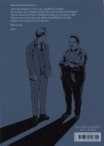 Monsieur Hercule Poirot, Vous vous imaginez, n'est-ce pas, capable de résoudre des mystères trop complexes pour notre pauvre police britannique ? Voyons, Monsieur Poirot l'Intelligent, jusqu'où vous pouvez aller. Vous trouverez peut-être cette affaire trop difficile à résoudre. Rendez-vous à Andover, le 21 du mois. Bien à vous,