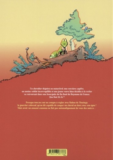 Un chevalier déguisé en ménestrel, une sorcière captive, un moine soldat incorruptible et une jeune veuve bien décidée à le renier se retrouvent dans une bourgade du fin fond du Royaume de France. Que font-ils là ? Presque tous les ont un compte à régler avec Raban de Thuringe le guerrier colossal, qu'on dit capable de couper un cheval en deux avec son épée ! Mais avoir un ennemi commun ne rail pas automatiquement de vous des ami.e.s...