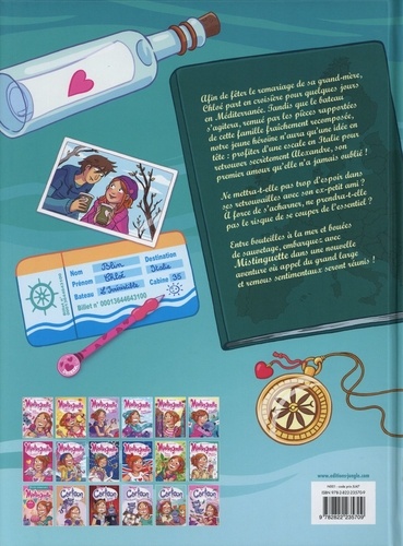 Un nouveau tome de Mistinguette sur la thématique des familles recomposées ! Afin de fêter le remariage de sa grand-mère, Chloé part en croisière pour quelques jours en méditerranée. tandis que le bateau s'agitera, remué par les pièces rapportées de cette famille fraîchement recomposée, notre jeune héroïne n'aura qu'une idée en tête : profiter d'une escale en Italie pour retrouver secrètement Alexandre, son premier amour qu'elle n'a jamais oublié ! Ne mettra-t-elle pas trop d'espoir dans ses retrouvailles avec son ex-petit ami ? A force de s'acharner, ne prendra-t-elle pas le risque de se coupe de l'essentiel ? Entre bouteilles à la mer et bouées de sauvetage, embarquez avec MISTINGUETTE dans une nouvelle aventure où appel de grand large et remous sentimentaux seront réunis !