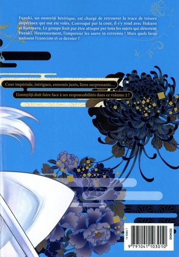 Fuzuki, un onmyôji hérétique, est chargé de retrouver la trace de trésors impériaux qui ont été volés. Convoqué par la cour, il s'y rend avec Hakuro et Ranmaru. Le groupe finit par être attaqué par tous les sujets qui détestent Fuzuki. Heureusement, l'empereur les sauve in extremis ! Mais quels liens unissent l'exorciste et ce dernier ? Cour impériale, intrigues, ennemis jurés, liens surprenants... L'onmyôji doit faire face à ses responsabilités dans ce volume 2 !