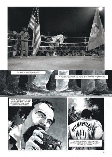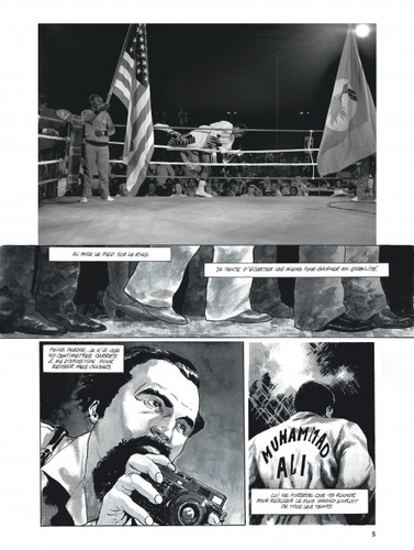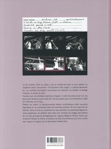 En 1974, Mohammed Ali a la chance incroyable de pouvoir récupérer son titre de champion du monde contre le tenant du titre : George Foreman. Un combat de boxe va les opposer au Zaïre. Organisé par le promoteur Don King et payé par le dictateur Mobutu Sese Seko, ce combat a pour but avoué de promouvoir la zaïrianisation (décolonisation culturelle). Sur l'affiche, on pouvait lire : "Un cadeau du président Mobutu au peuple zaïrois et un honneur pour l'homme noir." Ce combat, d'abord prévu le 25 septembre, se déroulera finalement le 30 octobre. Surnommé par la population "The Rumble in the Jungle", il doit se dérouler en quinze rounds maximum. Foreman est un véritable monstre, il vient de vaincre par K.O. les deux seuls adversaires à avoir battu Ali. Mais ce dernier compte bien récupérer son titre de champion du monde. De plus, le peuple zaïrois le soutient, ce qui démoralise profondément son adversaire. Il n'empêche que de son propre aveu, Ali est terrifié à l'idée de l'affronter sur le ring. Fin stratège, il sait qu'il ne pourra vaincre Foreman qu'en l'épuisant. Il encaissera donc des coups pendant huit rounds avant de mettre K.O. le tenant du titre, déjouant tous les pronostics ! Abbas, photojournaliste qui se trouve sur place, va immortaliser cette rencontre incroyable. Il gardera les clichés pour lui pendant 36 ans ! Dans ce livre rare, véritable croisement entre le documentaire, le photoreportage et le roman graphique, ces photos se révèlent d'autant plus percutantes dans leur contexte. Les auteurs viennent combler les espaces entre les clichés, permettant de comprendre ce qui y est photographié et l'Histoire qu'ils renferment.
