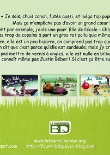 "Je sais, chuis canon, futée aussi, et méga top populaire. Mais ça m'empêche pas d'avoir un grand coeur ! En ce moment par exemple, j'aide une pauv' fille de l'école- Chloé qu'elle s'appelle. Elle a pas trop de copains à part un gros rat poilu qu'a même pas de queue. Faut dire, elle est un peu bizarre, on comprend pas trop quand elle parle. Maman dit que c'est parce qu'elle est surdouée, mais j'y crois pas trop. Elle sait pas mettre de vernis à ongles, elle est nulle en bilboquet et piiiire, elle connaît même pas Justin Béber ! Si c'est ça être surdouée . ". .