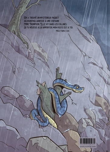 "On a trouvé un mystérieux paquet aujourd'hui, adressé à une certaine Mme Thompson. Elle vit dans les collines. Si tu réussis à lui apporter, mon poste est à toi." Molly Wind, 9 ans