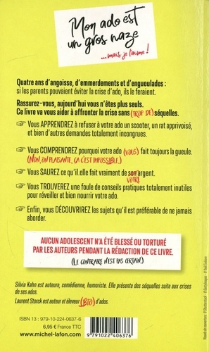 Quatre ans d'angoisse, d'emmerdements et d'engueulades : si les parents pouvaient éviter la crise d'ado, ils le feraient. Rassurez-vous, aujourd'hui vous n'êtes plus seuls. Ce livre va vous aider à affronter la crise sans (trop de)séquelles. Vous APPRENDREZ à refuser à votre ado un scooter, un rat apprivoisé, et bien d'autres demandes totalement incongrues. Vous COMPRENDREZ pourquoi votre ado (vous) fait toujours la gueule. (NON, ON PLAISANTE, CA C'EST IMPOSSIBLE.) Vous SAUREZ ce qu'il. elle fait vraiment de son argent. Vous TROUVEREZ une foule de conseils pratiques totalement inutiles pour réveiller et bien nourrir votre ado. Enfin, vous DECOUVRIREZ les sujets qu'il est préférable de ne jamais aborder.