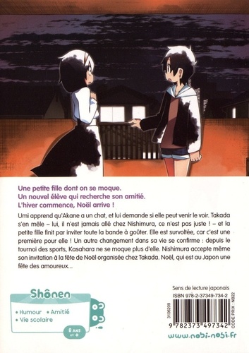 Une petite fille dont on se moque. Un nouvel élève qui recherche son amitié. L'hiver commence, Noël arrive ! Umi apprend qu'Akane a un chat, et lui demande si elle peut venir le voir. Takada s'en mêle - lui, il n'est jamais allé chez Nishimura, ce n'est pas juste ! - et la petite fille finit par inviter toute la bande à goûter. Elle est survoltée, car c'est une première pour elle ! Un autre changement dans sa vie se confirme : depuis le tournoi des sports, Kasahara ne se moque plus d'elle. Nishimura accepte même son invitation à la fête de Noël organisée chez Takada. Noël, qui est au Japon une fête des amoureux...