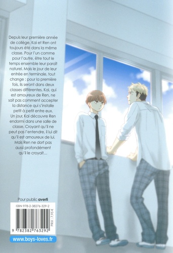 Depuis leur première année de collège, Kai et Ren ont toujours été dans la même classe. Pour l'un comme pour l'autre, être tout le temps ensemble leur paraît naturel. Mais le jour de leur entrée en terminale, tout change , pour la première fois, ils seront dans deux classes différentes. Kai, qui est amoureux de Ren, ne sait pas comment accepter la distance qui s'installe petit à petit entre eux. Un jour, kai découvre Ren endormi dans une salle de classe. Croyant qu'il ne peut pas l'entendre, il lui dit qu'il est amoureux de lui. Mais Ren ne dort pas aussi profondément qu'il ne le croyait...