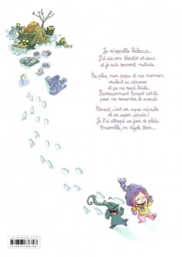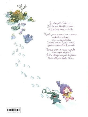 Elle s'appelle Rebecca, elle a six ans, bientôt et demi. Ses défenses immunitaires sont un peu faibles, mais elle ne compte pas se laisser faire : elle va prouver au monde qu'elle n'est pas une puce. Partie chasser la grenouille par temps de pluie, Rebecca attrape finalement Ernest, un drôle de microbe qui n'a pas la langue dans sa poche. Le genre d'ami bien utile à l‘heure où les parents se perdent dans leurs disputes de grands. Un nouvel album-jeunesse des plus originaux qui marie un graphisme très moderne avec une grande sensibilité dans le scénario.