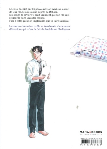 Dis-moi comment faire pour retrouver mon fils, maintenant qu'il est parti dans un autre monde. "Mon fils s'est réincarné dans un autre monde. Tu me crois, n'est-ce pas ? " Dobara est touché par les blessures et la détermination de Mio. En rentrant chez elle, Mio se rend compte avec surprise que son mari est de retour. Malgré le chagrin, elle ne parvient pas à lui partager les cris de douleur intérieurs qui la torturent depuis le départ de leur fils. Elle se précipite alors vers Dobara le coeur plein, et c'est auprès de lui qu'elle trouve du réconfort. Dans sa quête pour retrouver son fils, Mio va peu à peu ouvrir son coeur... Une aventure humaine drôle et touchante d'une mère déterminée, qui refuse de faire le deuil de son fils disparu. Série terminée en 5 tomes