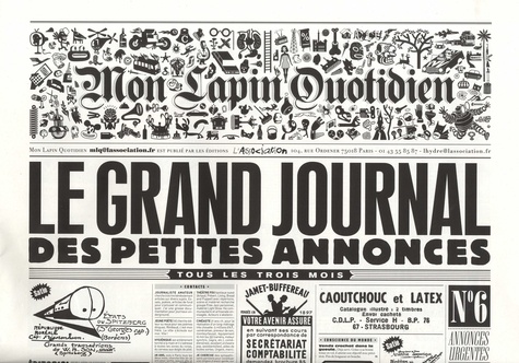 Mon Lapin Quotidien se lance dans les affaires ! Les affaires à ne pas rater, les aubaines à saisir. Ce numéro printemps-été, c'est des centaines d'affaires bien juteuses comme des fruits gorgés de soleil ! Des wagons de petites annonces à foison. Des choses que l'on cherche, dont on cherche à se débarrasser, des choses à vendre, à donner, à échanger, des gens qui se vendent, qui se donnent qui s'échangent, toutes sortes de choses, les choses de l'esprit y compris, toutes sortes de gens, d'esprit exclusivement. C'est une manière de "MLQ BOUM BOUM" qui va faire un bruit du tonnerre. Et les affaires de nos lecteurs ! Sans oublier, évidemment, les plus belles plumes de la littérature, de la bande dessinée et du dessin contemporain ! Ce qui, on en conviendra aisément, ne gâche rien, au contraire. MLQ, ou comment faire des affaires tout en se rinçant la rétine et en se musclant les méninges. MLQ est copain avec radio NOVA.