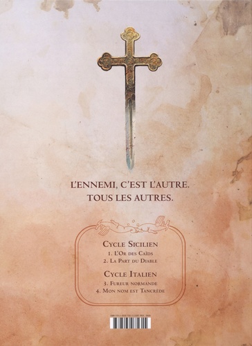 Pour Tancrède, c'est l'heure de tous les dangers. Capturé par Hugues, le voilà entre les mains de Guillaume de Hauteville, le chef des troupes normandes. Celui-ci voit en lui un redoutable soldat dont il aimerait se faire un allié. Afin d'inciter Tancrède à réveiller son âme guerrière, depuis longtemps en sommeil, Guillaume l'oppose en combat singulier à plusieurs prisonniers, auxquels il promet la liberté en cas de victoire. " Tu t'apprêtes à faire sortir le diable ", lui glisse Etienne, le représentant du pape. Aucun homme ne saura vaincre Tancrède. Même Hugues périra au fil de son épée... Vivant, Tancrède reste une menace pour l'Eglise. Pourtant, Etienne décide de lui offrir sa liberté : seul Tancrède est en mesure de l'aider à retrouver sa soeur. Ce quatrième tome marque la fin du cycle italien. Il confirme les qualités d'une saga qui explore un cadre ? la Méditerranée du XIe siècle - peu traité par la bande dessinée et qui allie la rigueur de ses sources historiques à un dessin évoquant autant la poésie de Moebius que la puissance de Jack Kirby.