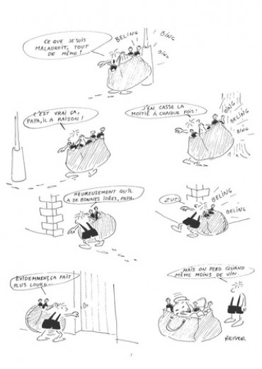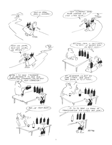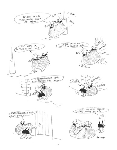Un Petit Nicolas version trash ! Voici la réédition d'une des premières oeuvres de Reiser, parue dans les pages du journal "Hara Kiri" entre 1961 et 1970 : Mon Papa, ou la vie d'un gosse maltraité et de son père, alcoolique au chômage... Evidemment, rien n'est épargné aux personnages, et du coup, au lecteur ! Contrairement à d'autres albums plus liés à l'actualité de l'époque de parution, celui-ci est intemporel, par le thème abordé. Il est même très probable qu'aujourd'hui, personne n'oserait écrire des planches d'un tel niveau d'humour noir ! Le dessin de Reiser est ici plus dépouillé, proche de celui de Sempé. Reiser se fait bête et méchant, mais c'est bien sûr pour mieux faire exploser à la figure de ses lecteurs la cruauté qui frappe les moins chanceux...
