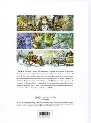 Giverny, automne 1886. Émilie, jeune protégée de Claude Monet fait la rencontre de Francis Hawkins, fils d'un galeriste de New York venu rencontrer le célèbre peintre impressionniste. L'une vit en France, l'autre aux États-Unis mais, malgré cette distance, ils le savent : un jour, ils se marieront. Cette promesse marque le début d'un amour pur qui sera pourtant souvent perturbé par les aléas de l'Histoire. Un amour qui traversera 4 saisons, 4 périodes de l'œuvre de Monet et qui sera toujours bercé par les magnifiques couleurs du jardin du peintre, lorsqu'il réalisera ses célèbres Nymphéas...Tant par le scénario que par le dessin, Frank Sécka et Vincent Gravé nous replongent avec force dans la fin de l'œuvre de Monet, période Giverny, et dans ce bouillonnant moment artistique que fut le début du XXe siècle en France.