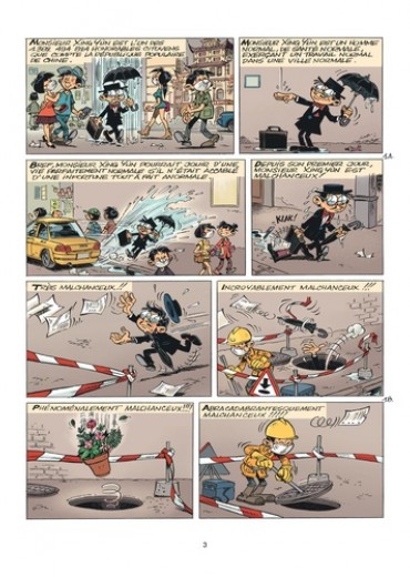 Monsieur Xing Yun est un citoyen chinois ordinaire, menant une vie ordinaire dans une ville ordinaire... Or, depuis le jour de sa naissance, le malheureux est accablé d'une terrible malédiction : il est l'homme le plus malchanceux du monde ! Ayant testé, sans succès, d'innombrables talismans, amulettes, grigris et autres porte-bonheurs, et abandonnant tout espoir face à la fatalité, l'infortuné monsieur Xing Yun s'est retiré dans un monastère ordinaire où un vénérable moine lui confie un secret extraordinaire : "Il existerait, cachée quelque part de l'autre côté du monde au plus profond d'une impénétrable jungle, une créature jaune tachetée de noir dont les poils seraient la plus efficace source de chance promise à leur heureux propriétaire". Fort de cette révélation inespérée, monsieur Xing Yun prend une décision : à partir de ce jour, aucun obstacle ne pourra le détourner de sa quête extraordinairement obstinée, trouver un honorable marsupilami pour lui arracher quelques-uns de ces précieux poils, synonymes d'une chance peu ordinaire ! De la Chine à la Palombie se prépare dès lors une rencontre mémorable entre l'homme et la légende, entre la chance et l'infortune, entre les deux forces contraires du destin.