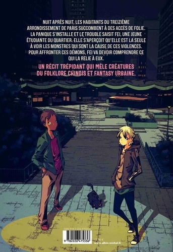 Nuit après nuit, les habitants du treizième arrondissement de Paris succombent à des accès de folie. La panique s'installe et le trouble saisit Fei, une jeune étudiante du quartier. Elle s'aperçoit qu'elle est la seule à voir les monstres qui sont la cause de ces violences. Pour affronter ces démons, Fei va devoir comprendre ce qui la relie à eux. Un récit trépidant qui mêle créatures du folklore chinois et fantasy urbaine.