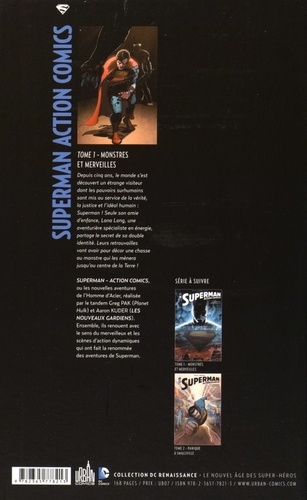 Depuis cinq ans, le monde s'est découvert un étrange visiteur dont les pouvoirs surhumains sont mis au service de la vérité, la justice et l'idéal humain : Superman ! Seule son amie d'enfance, Lana Lang, une aventurière spécialiste en énergie, partage le secret de sa double identité. Leurs retrouvailles vont avoir pour décor une chasse au monstre qui les mènera jusqu'au centre de la Terre ! Superman - Action Comics, ou les nouvelles aventures de l'Homme d'Acier, réalisée par le tandem Greg Pak (Planet Hulk) et Aaron Kuder (Les Nouveaux Gardiens). Ensemble, ils renouent avec le sens du merveilleux et les scènes d'action dynamiques qui ont fait la renommée des aventures de Superman.