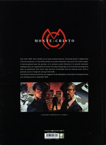 La rédemption d'un homme, l'histoire du Comte revisitée. Nous connaissons tous l'histoire du Comte de Monte-Cristo, écrite de main de maître par Alexandre Dumas : celle d'un innocent, trahi par ses propres amis et injustement enfermé. Et si l'histoire se répétait pour Sam Castillo ? Nous sommes à New York en 2005. Tout juste fiancé à Abigail, ce jeune américain se voit accusé de terrorisme dans le cadre d'une enquête impliquant la sécurité nationale. Direction : un sinistre pénitencier au large des côtes africaines. Là encore le destin s'en mêle ! Ce n'est certes pas l'abbé Faria du roman que Sam rencontre mais un détenu tout aussi cultivé qui va lui donner de l'espoir et bien plus. Creusant un tunnel depuis des années, il révèle à Sam un passage dans la roche et la piste pour faire de lui, une fois dehors, un homme riche. Ce sera par un coup du sort et une duperie macabre, que Sam parviendra à quitter sa cellule et à regagner l'ouest. Après 15 ans en enfer, Sam n'a rien oublié, ni Abigail, ni le visage de ses conspirateurs. Avec cette trilogie d'après l'oeuvre de Dumas, Jordan Mechner (créateur du jeu vidéo Prince of Persia et scénariste) nous lance sur les traces d'un homme broyé par le système dans l'Amérique post-11 septembre. Les dessins de Mario Alberti (Prométhée, Le Mur), toujours précis et justes, jettent les prémices d'une série pleine de péripéties à l'ambiance tendue et au scénario ciselé. A découvrir d'urgence.