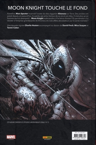 Moon Knight touche le fond. Autrefois, Marc Spector incarnait l'avatar du dieu égyptien Khonsou sur Terre. Des années ont passé depuis, et aujourd'hui, il a perdu ses amis, l'amour de sa vie et son dieu. Il n'est plus qu'un homme seul et désespéré... Moon Knight redeviendra-t-il le héros d'antan ? Et parviendra-t-il à résister à l'emprise grandissante de Khonsou et à ses effets dévastateurs sur la santé mentale ? Une épopée signée Charlie Huston accompagné au dessin de David Finch, Mico Suayan et Tomm Coker.