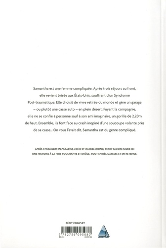 Découvrez le nouveau titre de Terry Moore ! Samantha, ex-militaire qui a effectué trois séjours en territoire hostile et souffrant de syndrome post-traumatique, vit retirée du monde et gère un garage ou plutôt une casse auto en plein désert. Elle a pour seul compagnon un ami imaginaire, un gorille de 2, 20 mètres de haut... Lorsqu'une soucoupe volante choisit de se crasher près de la casse, les ennuis de Samantha ne font que commencer...