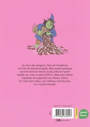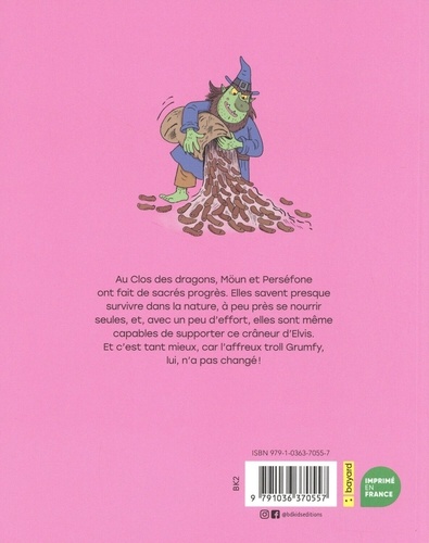 Au clos des dragons, l'apprentie dresseuse Möun et son acolyte Perséphone ont fait de sacrés progrès ! Elles savent à présent presque survivre dans la nature, à peu près se nourrir seule, et complètement cracher du feu pour griller des chamallows... Avec un peu d'efforts, elles sont même capables de supporter les crâneries d'Elvis ! Mais contre l'affreux Grumpfy qui rôde pour croquer des licornes, aucune de ces compétences nouvellement acquises ne sera aussi utile que leur maladresse ! Car, si le troll hideux est bien décidé à les vaincre par tous les moyens, la chance n'est heureusement pas de son côté. Après un premier tome joyeux et acidulé, l'adorable duo est de retour dans de nouvelles aventures, tout aussi pétillantes, drôles et espiègles. Car quoi de plus amusant que de voir un gros méchant se prendre les pieds dans ses propres pièges ?