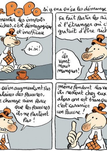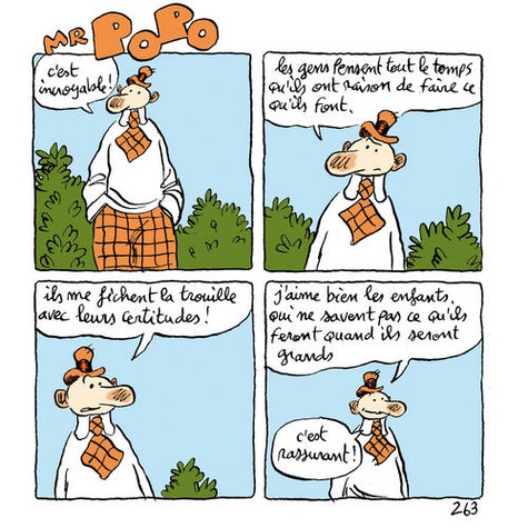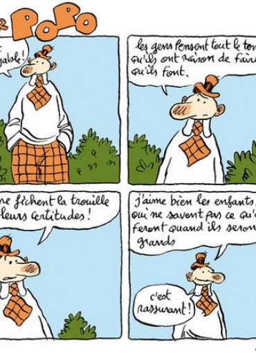 Compilation de strips d'un personnage récurrent de l'auteur, en grande partie publiés sur un blog dédié. Monsieur Popo est un témoin plus philosophe que candide, qui s'interroge sur la réalité sociale selon les évènements de l'actualité. Procédé classique en soi qui permet à l'auteur un regard acerbe sur le monde qui l'entoure, la série de Monsieur Popo vaut pour la logique implacable, humaine et profondément drôle qui transite au travers des questionnements du personnage et incite à une vraie réflexion.