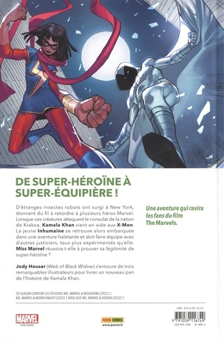 Kamala Khan se lance dans une nouvelle mission qui va la conduire à faire équipe avec un genre de héros auquel elle n'est pas habituée ! Wolverine, Moon Knight et Venom sont de la partie... et ils ne sont pas vraiment dans le même "mood" que la jeune héroïne. Miss Marvel saura-t-elle se faire une place au milieu des anti-héros ? Voici un récit complet centré sur Miss Marvel, au moment où The Marvels, le film qui l'associe à Captain Marvel et à Monica Rambeau, sort au cinéma. Cet album réunit trois épisodes très spéciaux qui forment un tout, une aventure à déguster d'un trait !